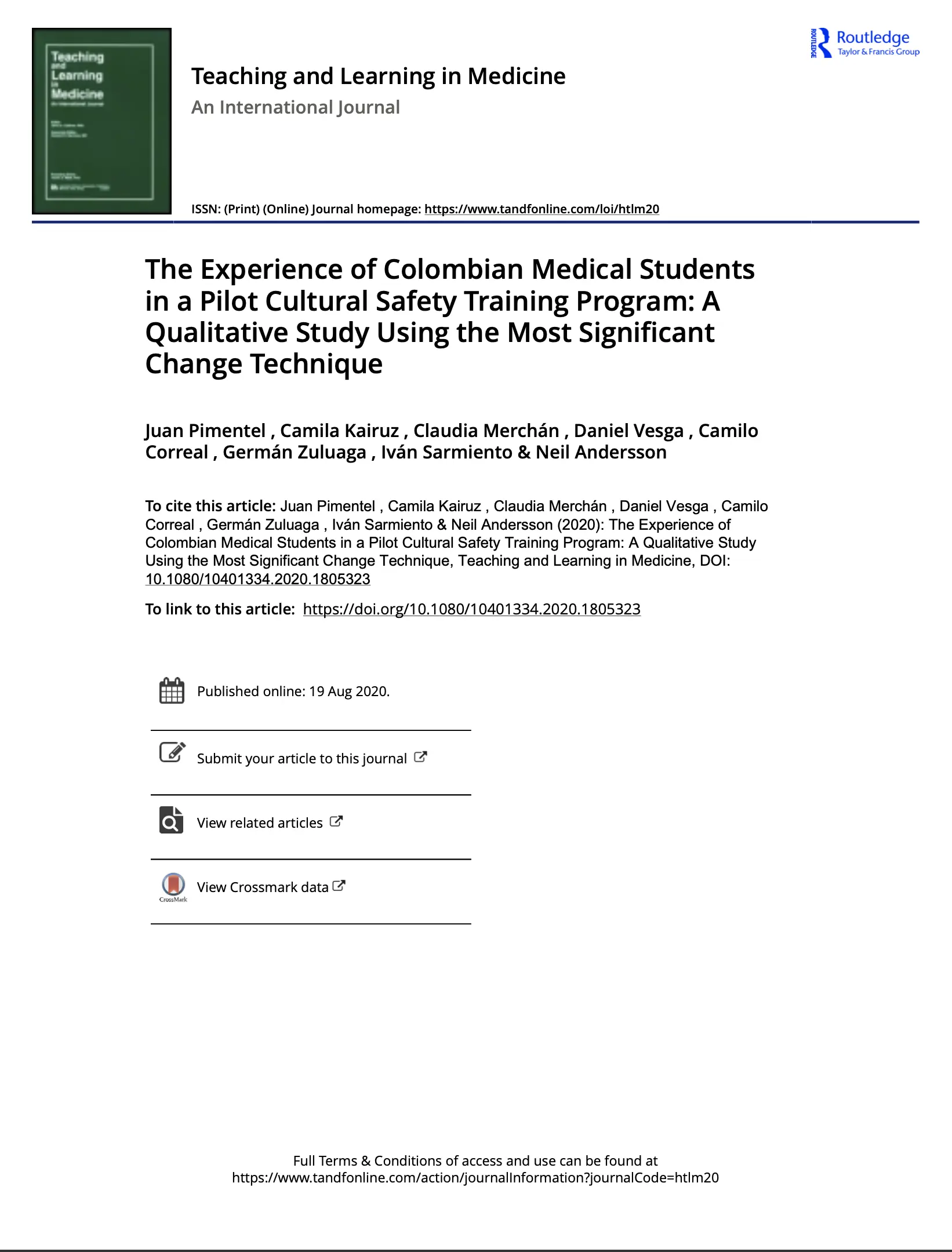The Experience of Colombian Medical Students in a Cultural Safety Training Program: A Qualitative Study Using the Most Significant Change Technique