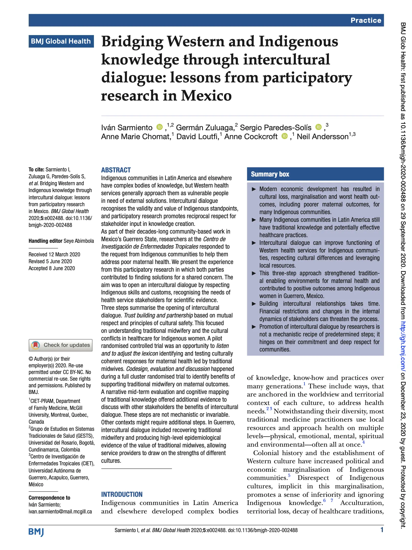Bridging Western and Indigenous knowledge through intercultural dialogue: Lessons from participatory research in Mexico