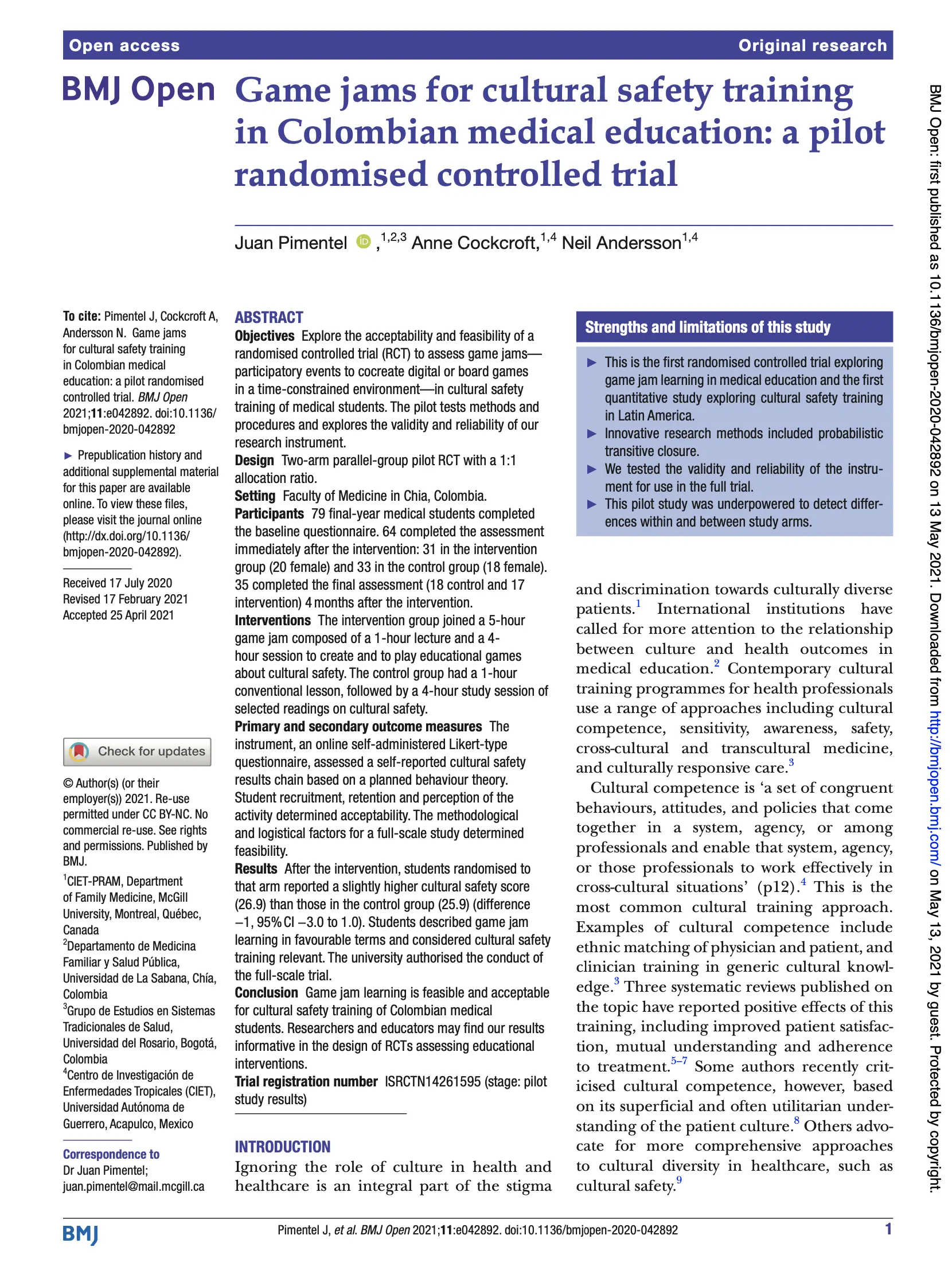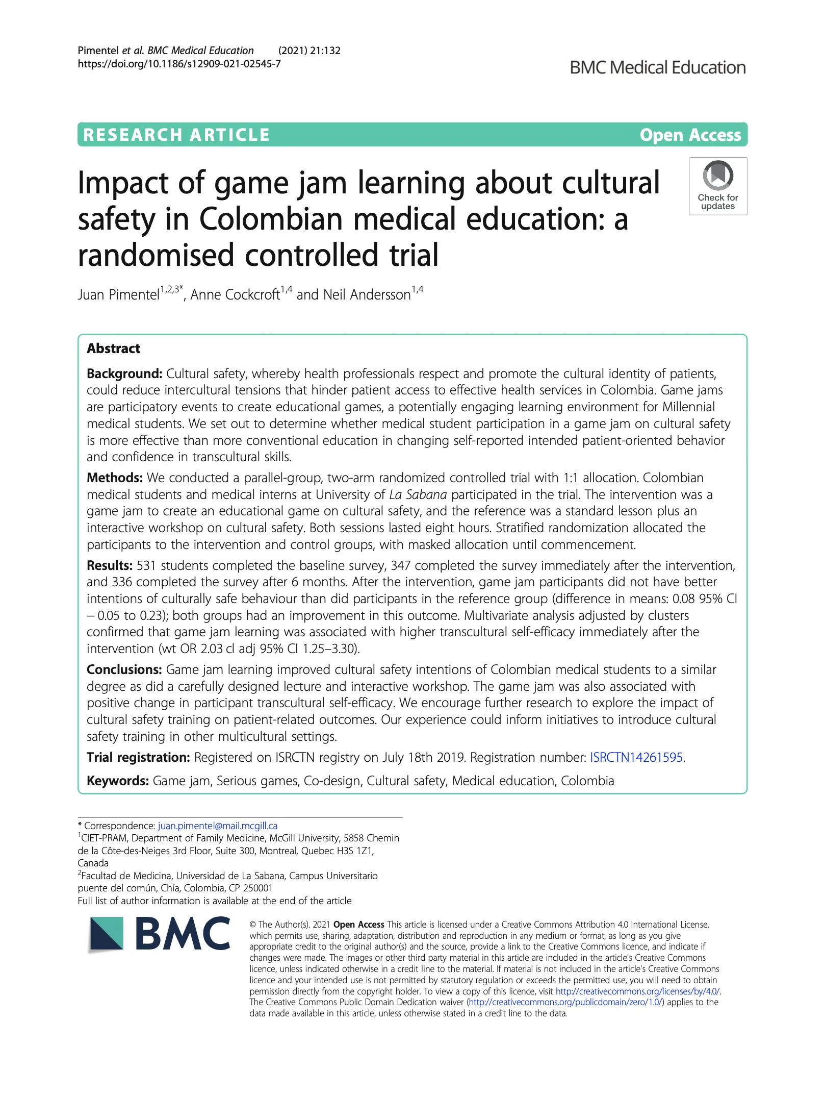 Impact of game jam learning about cultural safety in Colombian medical education: a randomised controlled trial