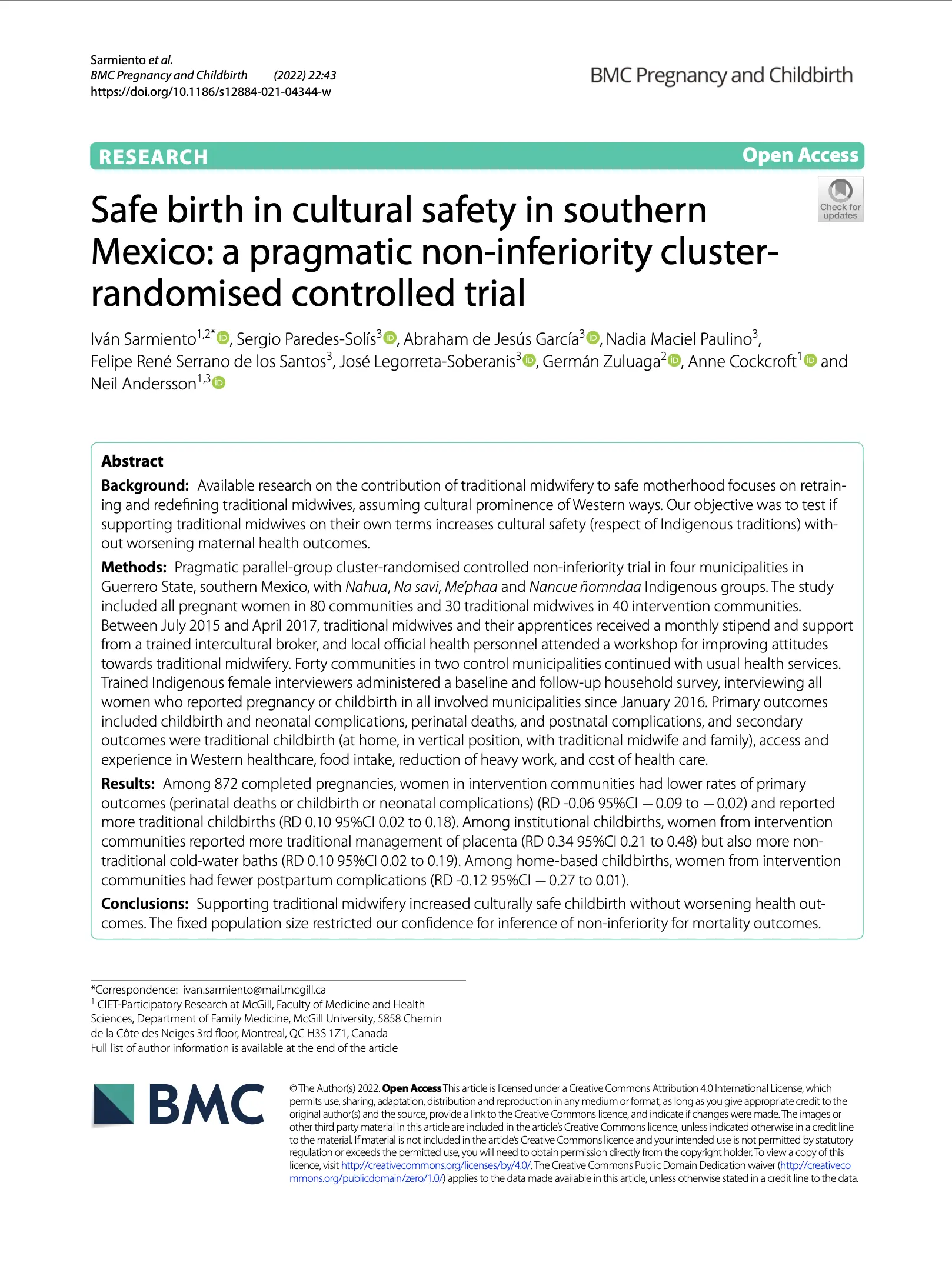 Safe birth in cultural safety in southern Mexico: a pragmatic non-inferiority cluster-randomised controlled trial