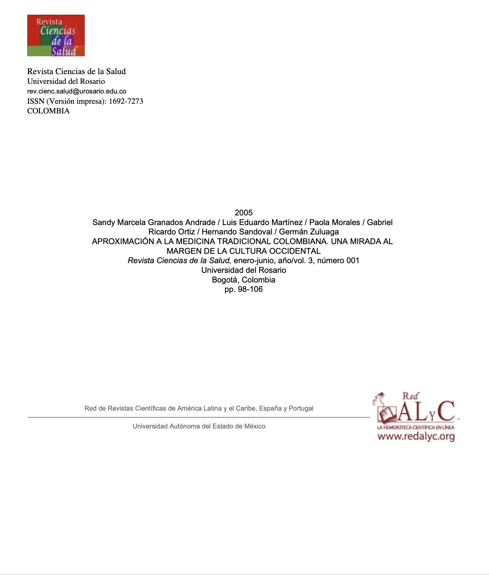 Aproximación a la medicina tradicional colombiana. Una mirada al margen de la cultura occidental