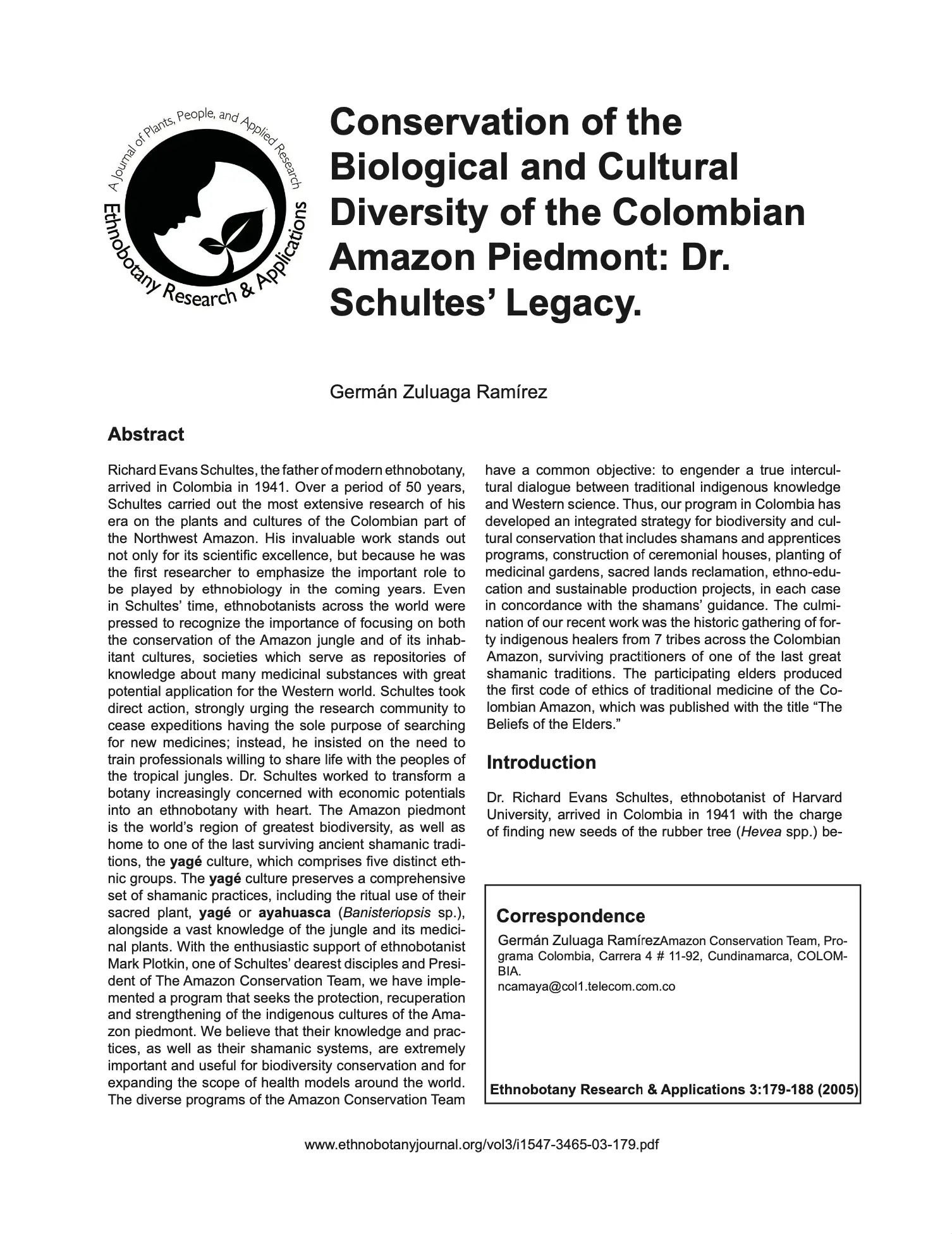 Conservation of the Biological and Cultural Diversity of the Colombian Amazon Piedmont: Dr. Schultes’ Legacy