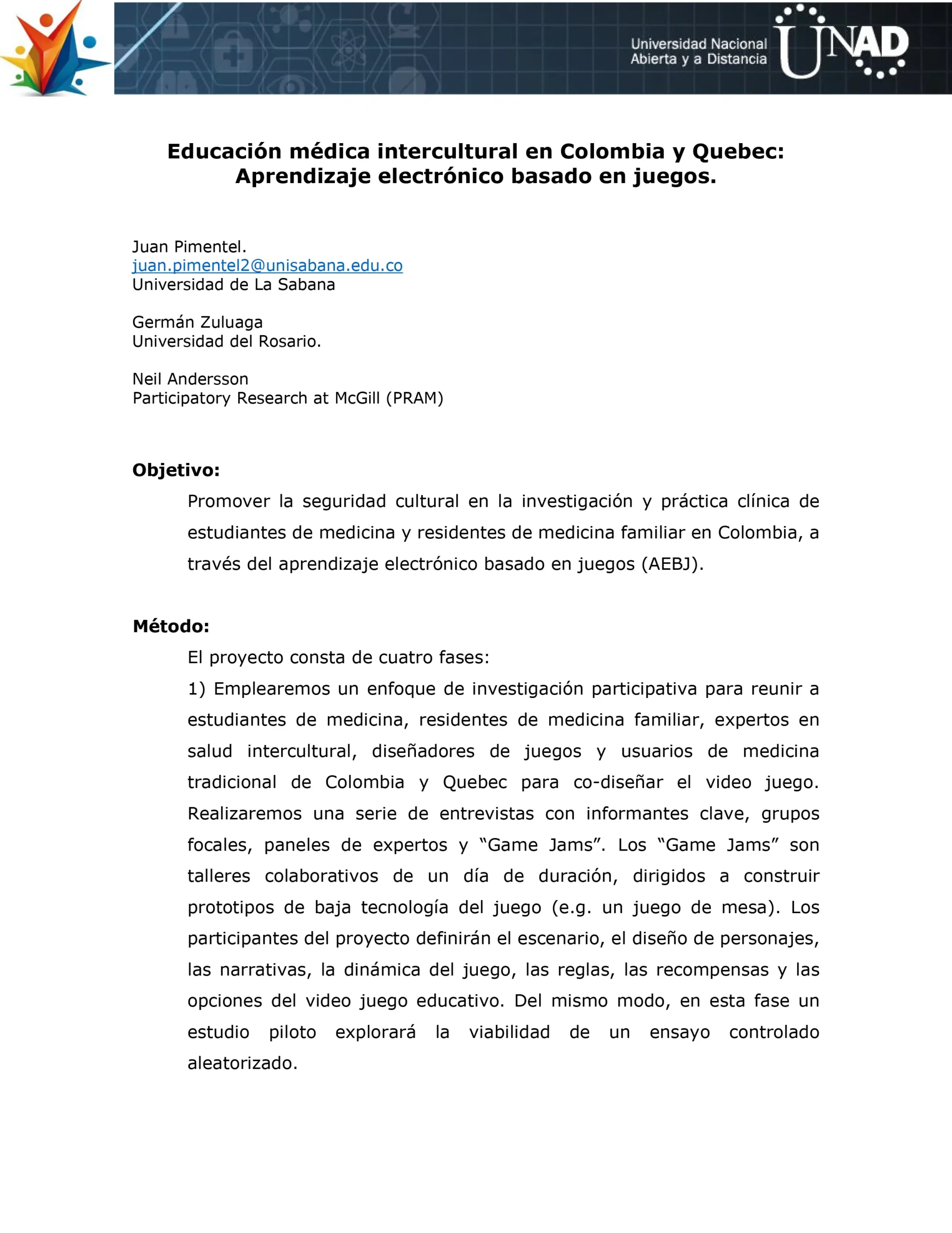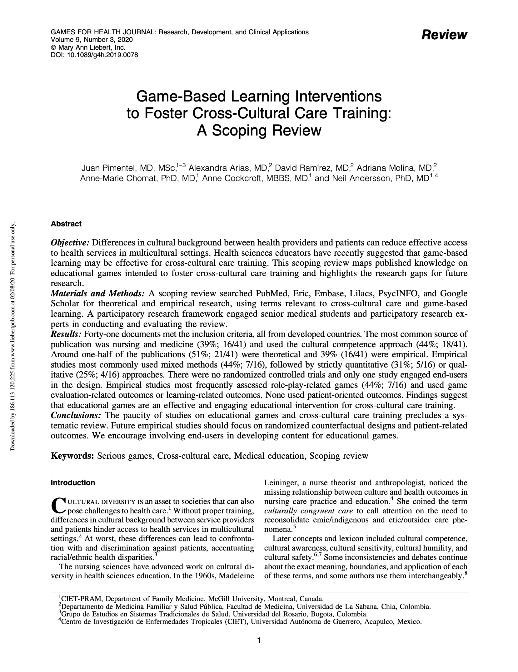 Educación médica intercultural en Colombia y Quebec: Aprendizaje electrónico basado en juegos.