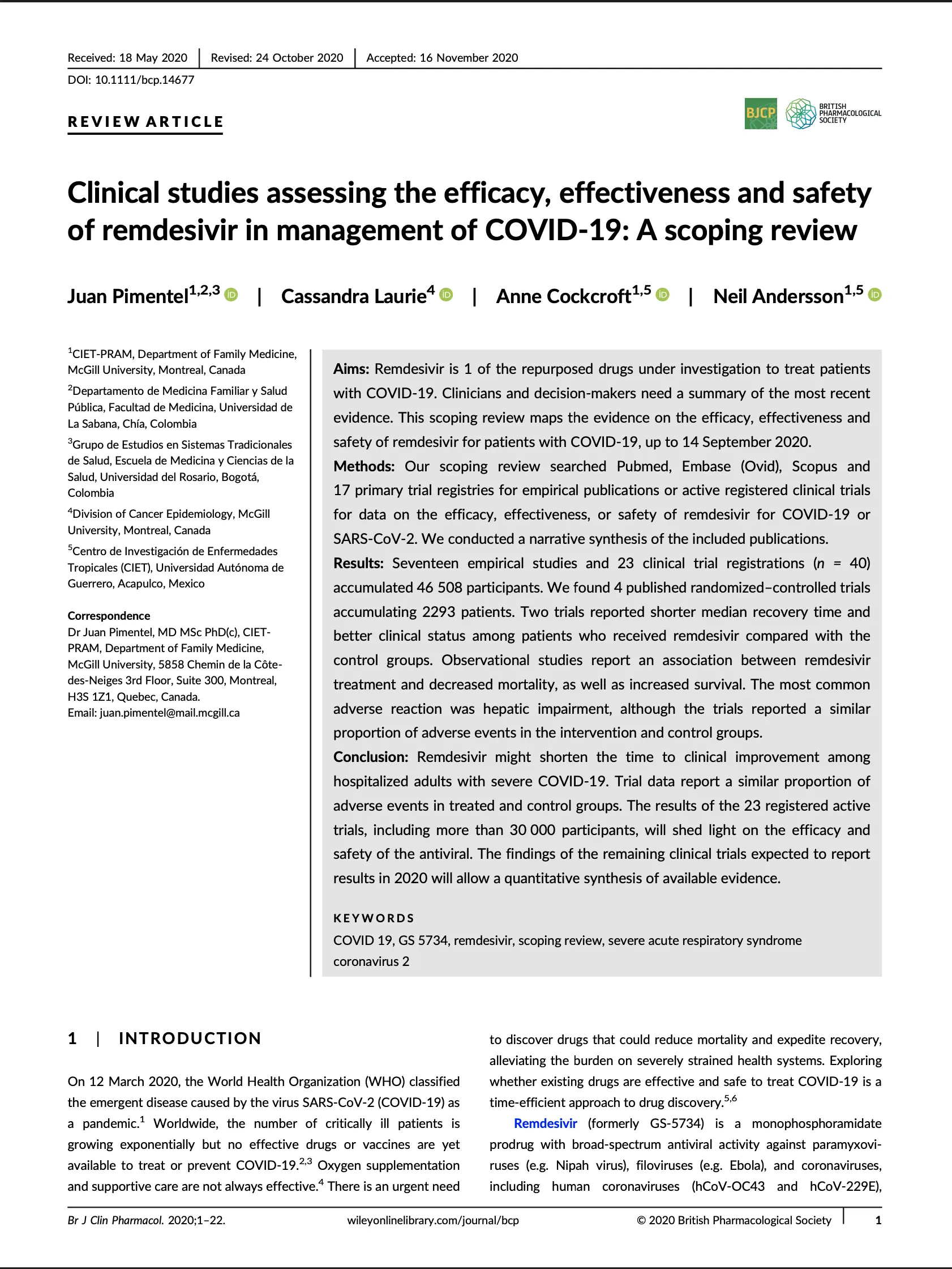 Clinical studies assessing the efficacy, effectiveness and safety of remdesivir in management of COVID-19