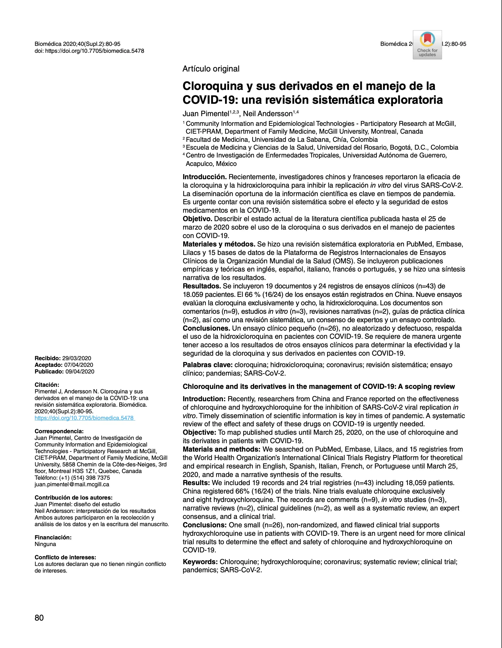 Cloroquina y sus derivados en el manejo de la COVID-19: una revisión sistemática exploratoria