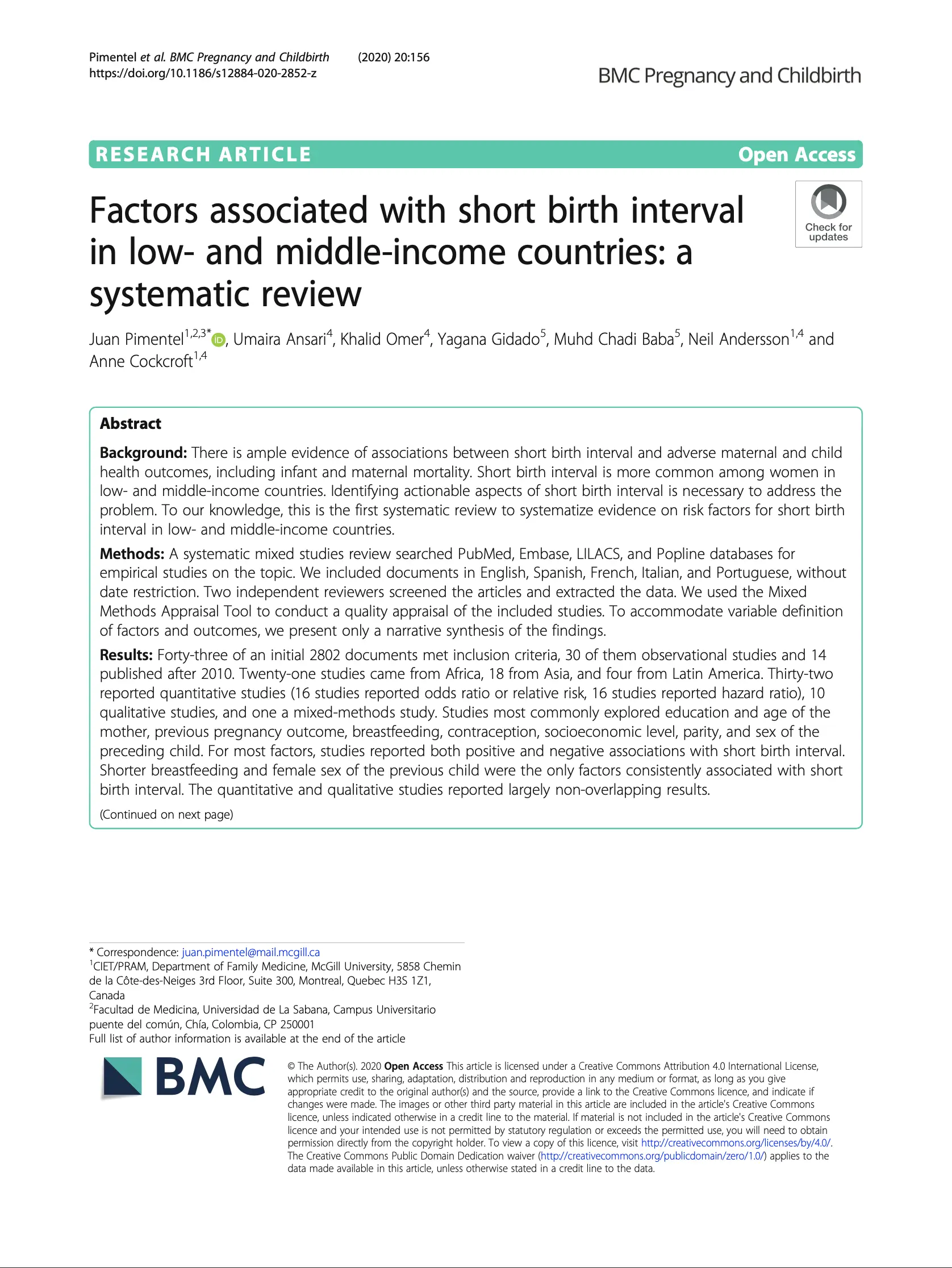 Factors associated with short birth interval in low- And middle-income countries: A systematic review
