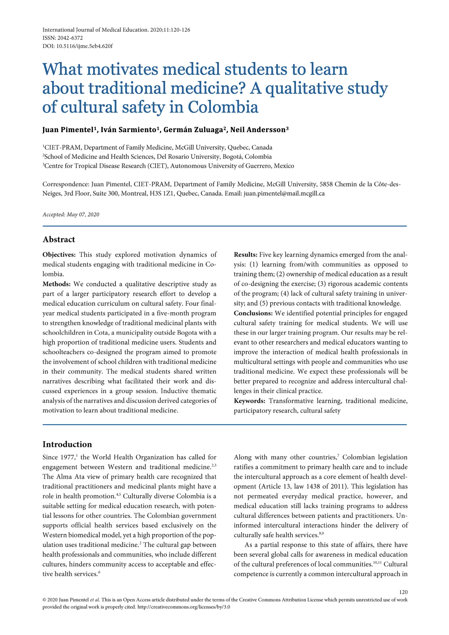 What motivates medical students to learn about traditional medicine? A qualitative study of cultural safety in Colombia