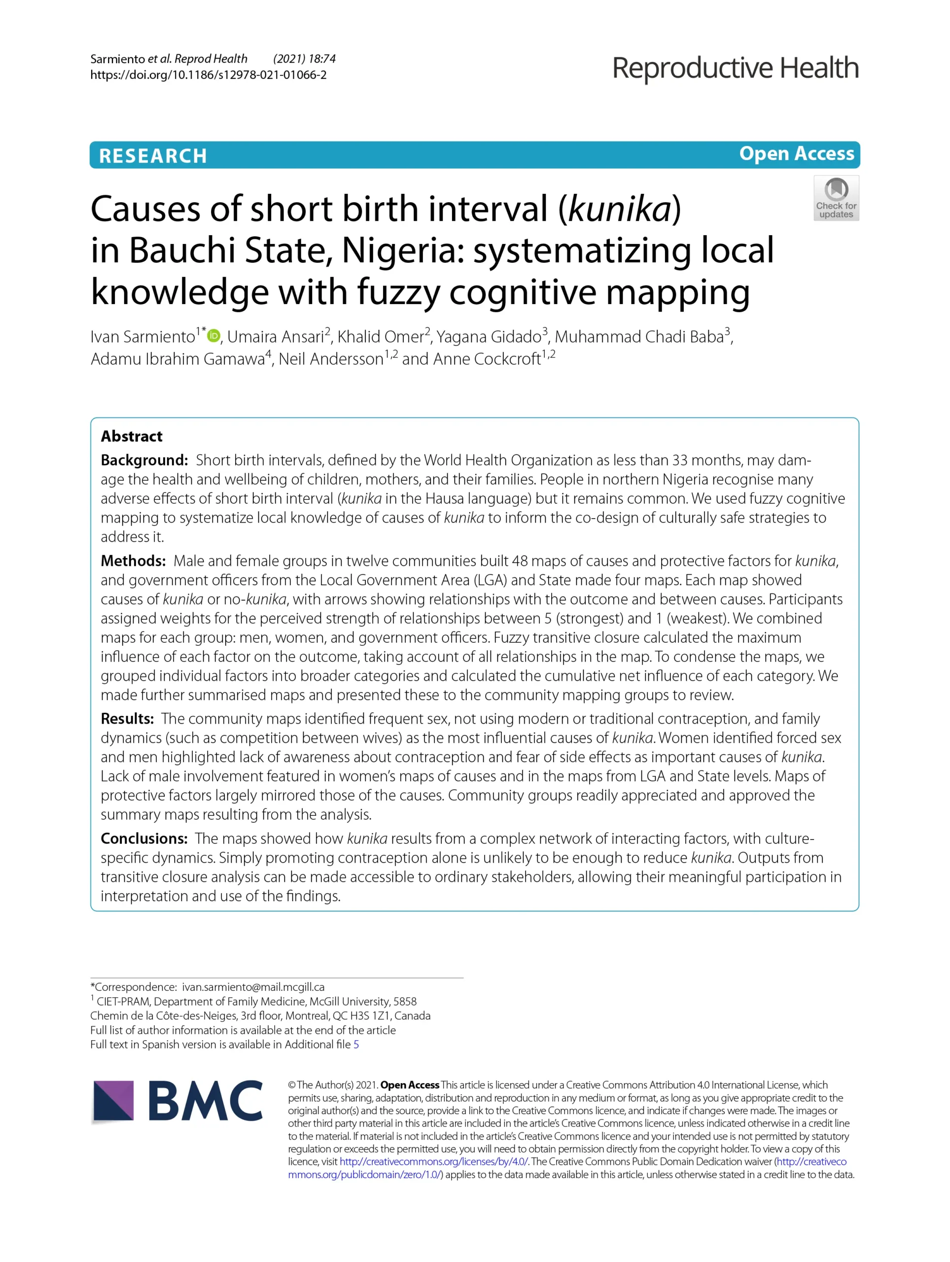 Causes of short birth interval (kunika) in Bauchi State, Nigeria: systematizing local knowledge with fuzzy cognitive mapping