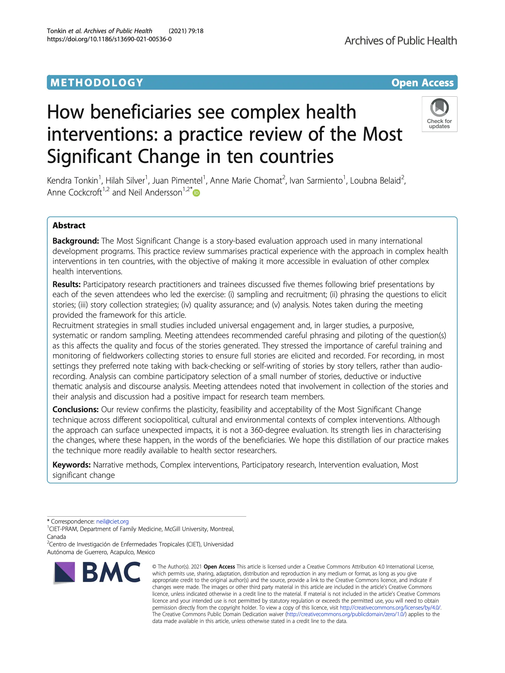 How beneficiaries see complex health interventions: a practice review of the Most Significant Change in ten countries