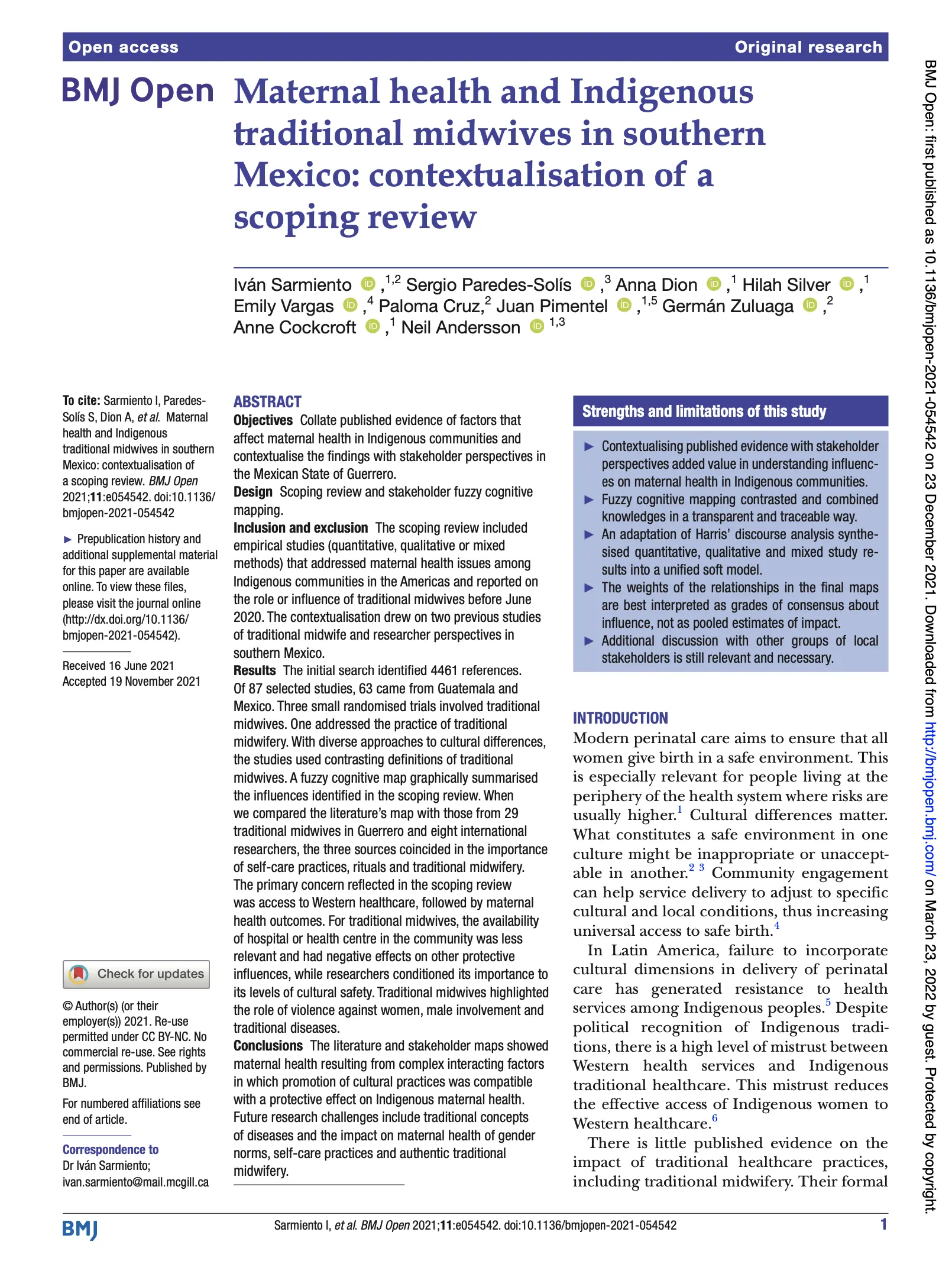 Maternal health and Indigenous traditional midwifes in Southern Mexico: contextualisation of a scoping review
