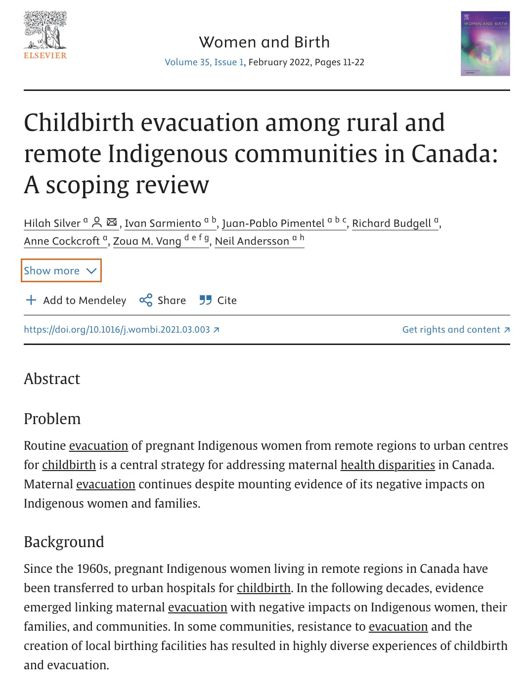 Childbirth evacuation among rural and remote Indigenous communities in Canada: A scoping review