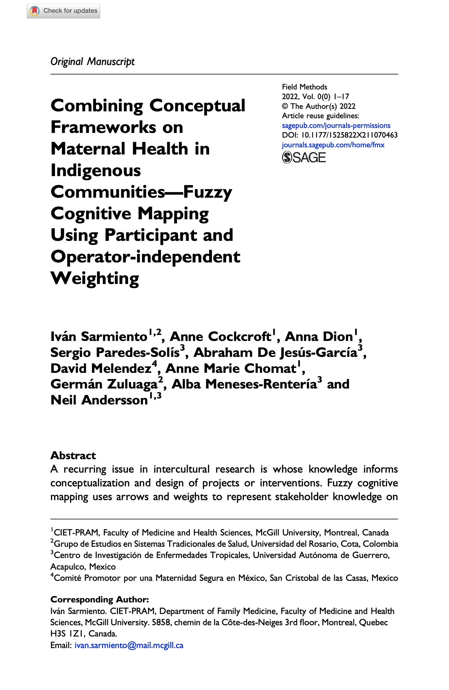 Combining Conceptual Frameworks on Maternal Health in Indigenous Communities—Fuzzy Cognitive Mapping