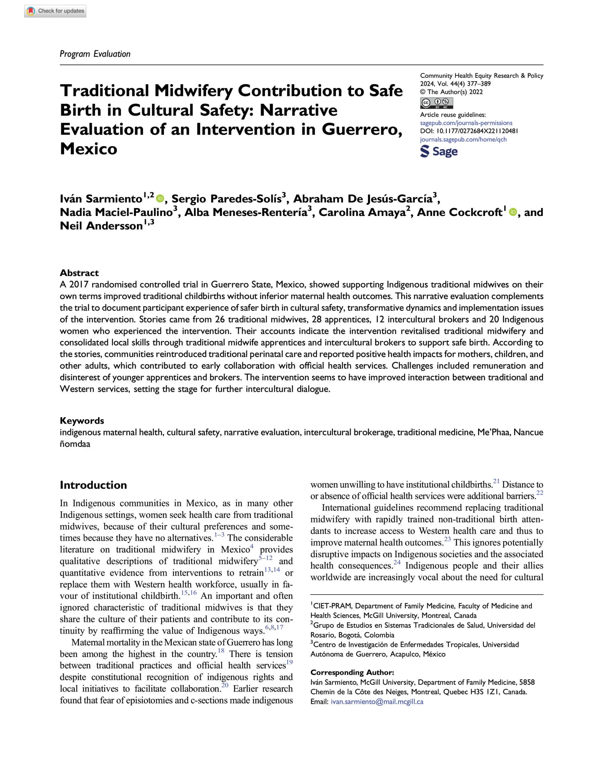 Traditional Midwifery Contribution to Safe Birth in Cultural Safety: Narrative Evaluation of an Intervention in Guerrero, Mexico