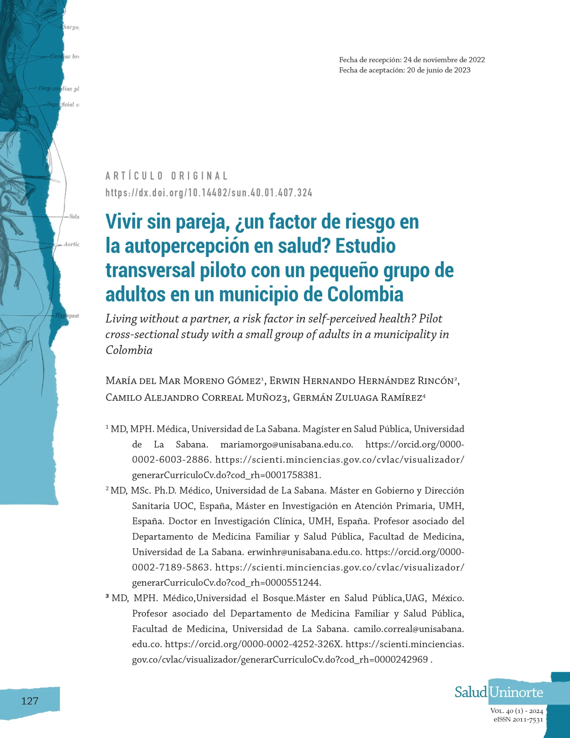 Vivir sin pareja, ¿un factor de riesgo en la autopercepción en salud? Estudio transversal piloto con un pequeño grupo de adultos en un municipio de Colombia
