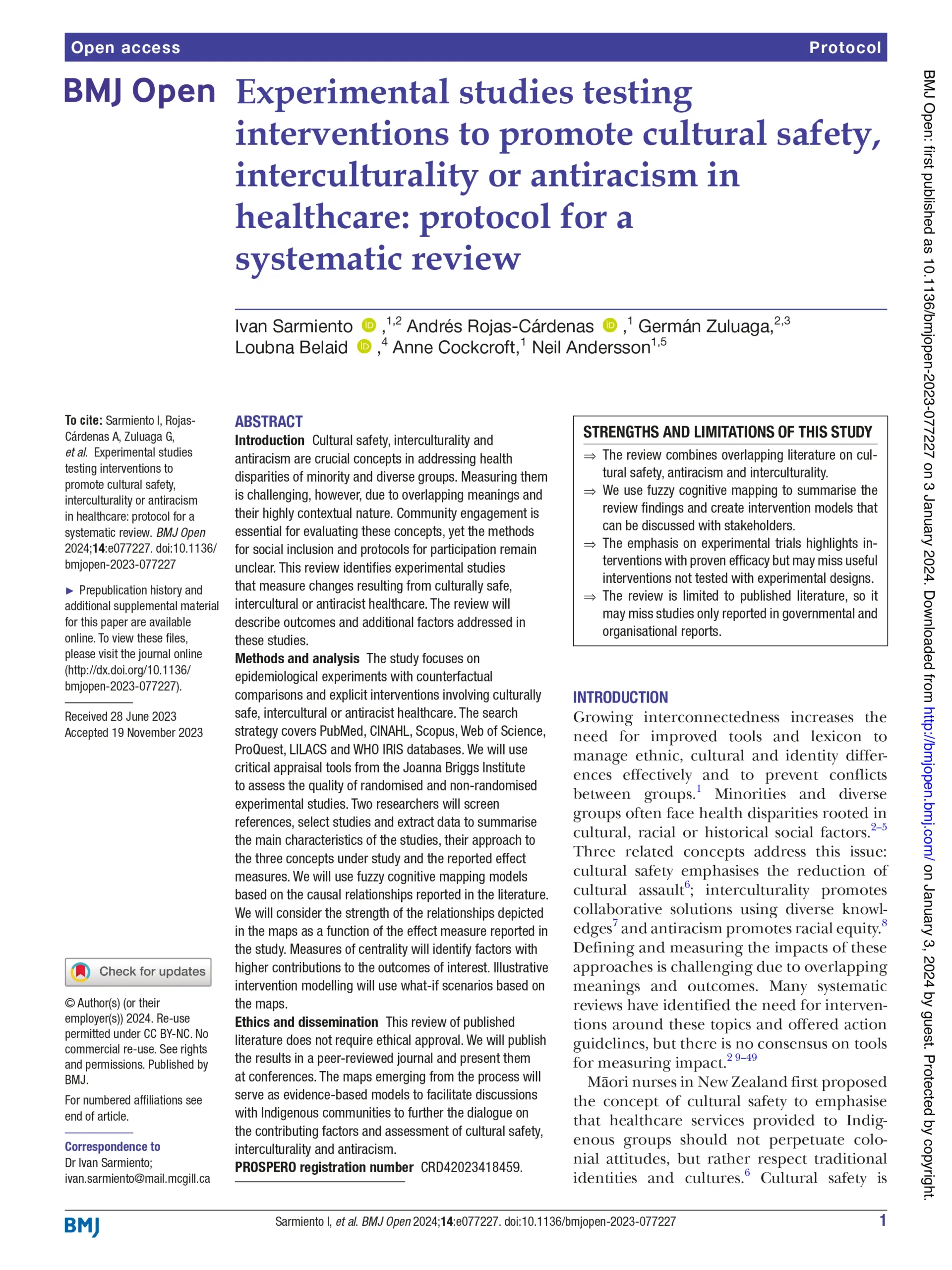 Experimental studies testing interventions to promote cultural safety, interculturality or antiracism in healthcare: protocol for a systematic review