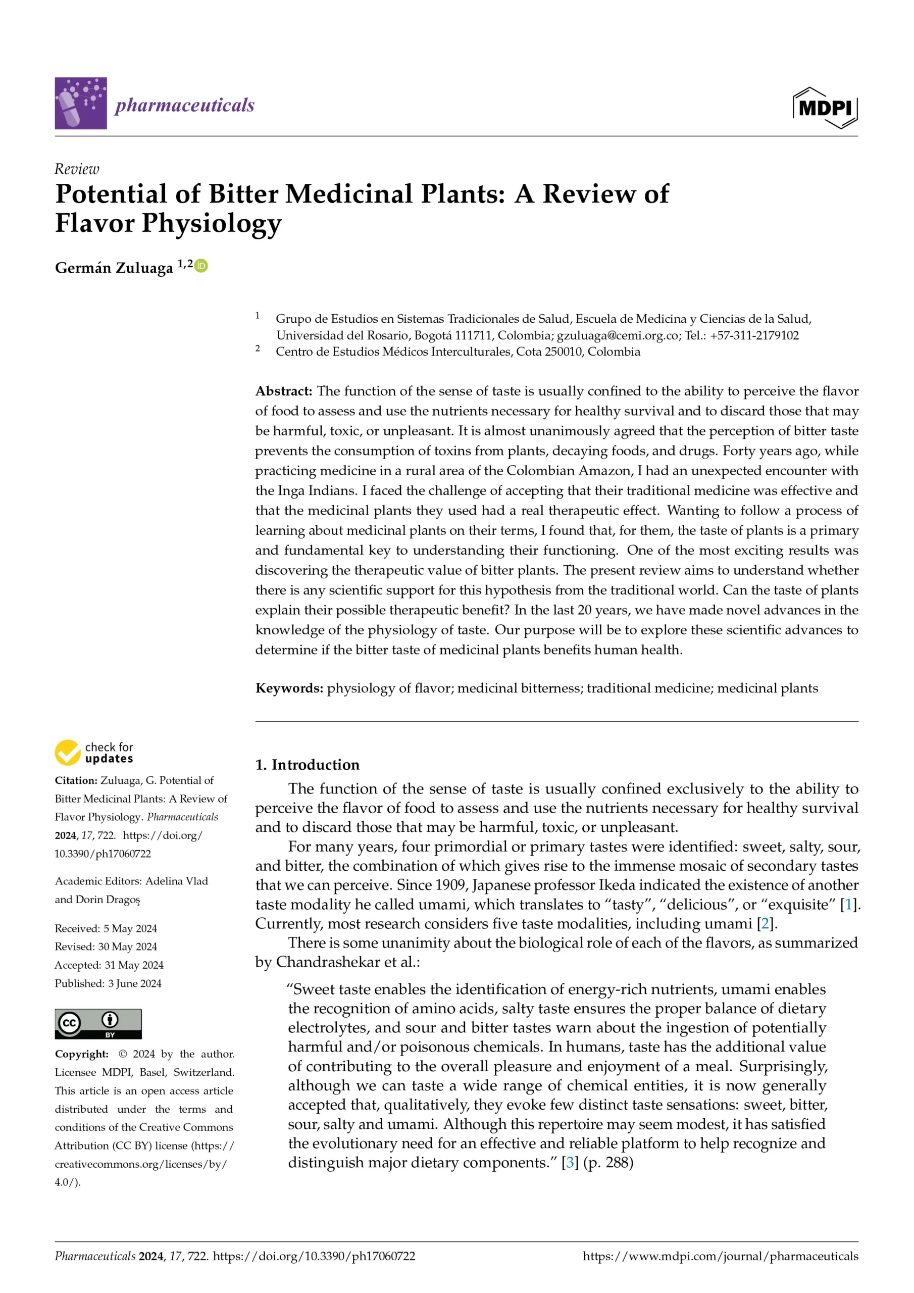 Potential of Bitter Medicinal Plants: A Review of Flavor Physiology